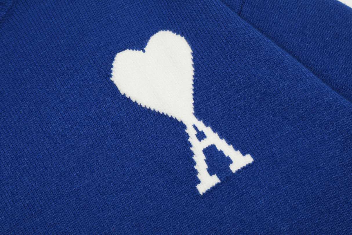 - Product Name: Am1 2024SS classic blue jacquard big heart turtleneck sweater