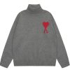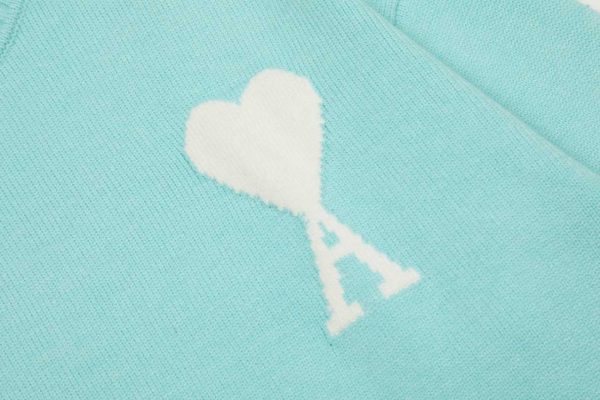 - Product Name: Am1 2024SS classic lake green jacquard big heart turtleneck sweater