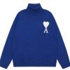 - Product Name: Am1 2024SS classic lake green jacquard big heart turtleneck sweater