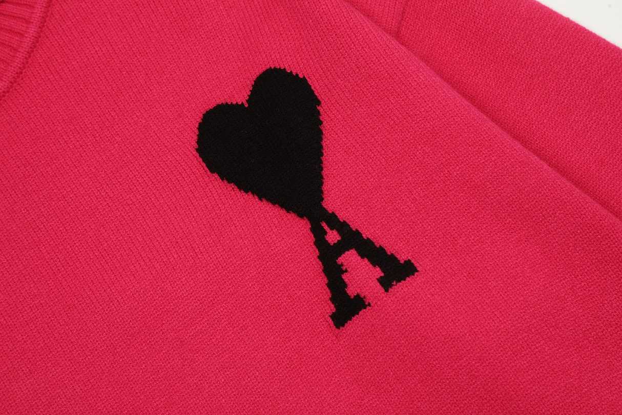 - Product Name: Am1 2024SS classic red jacquard big heart turtleneck sweater