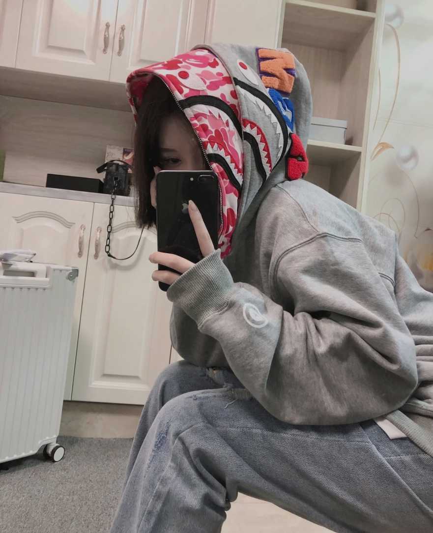 - Product Name: BAPE co-branded tiger head shark gray and pink double hoodie