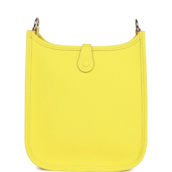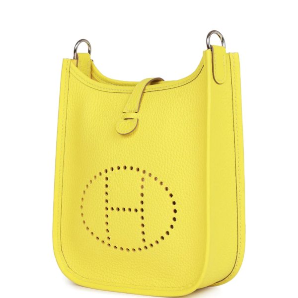 This Evelyne TPM is in Lime clemence leather with palladium hardware and features tonal stitching stitching, pull tab top closure and a quadrille removable canvas and leather shoulder/crossbody strap.