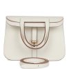 This Halzan is in Trench clemence leather with palladium hardware and has tonal stitching, foldable top handle and crossbody strap for multiple ways to wear.