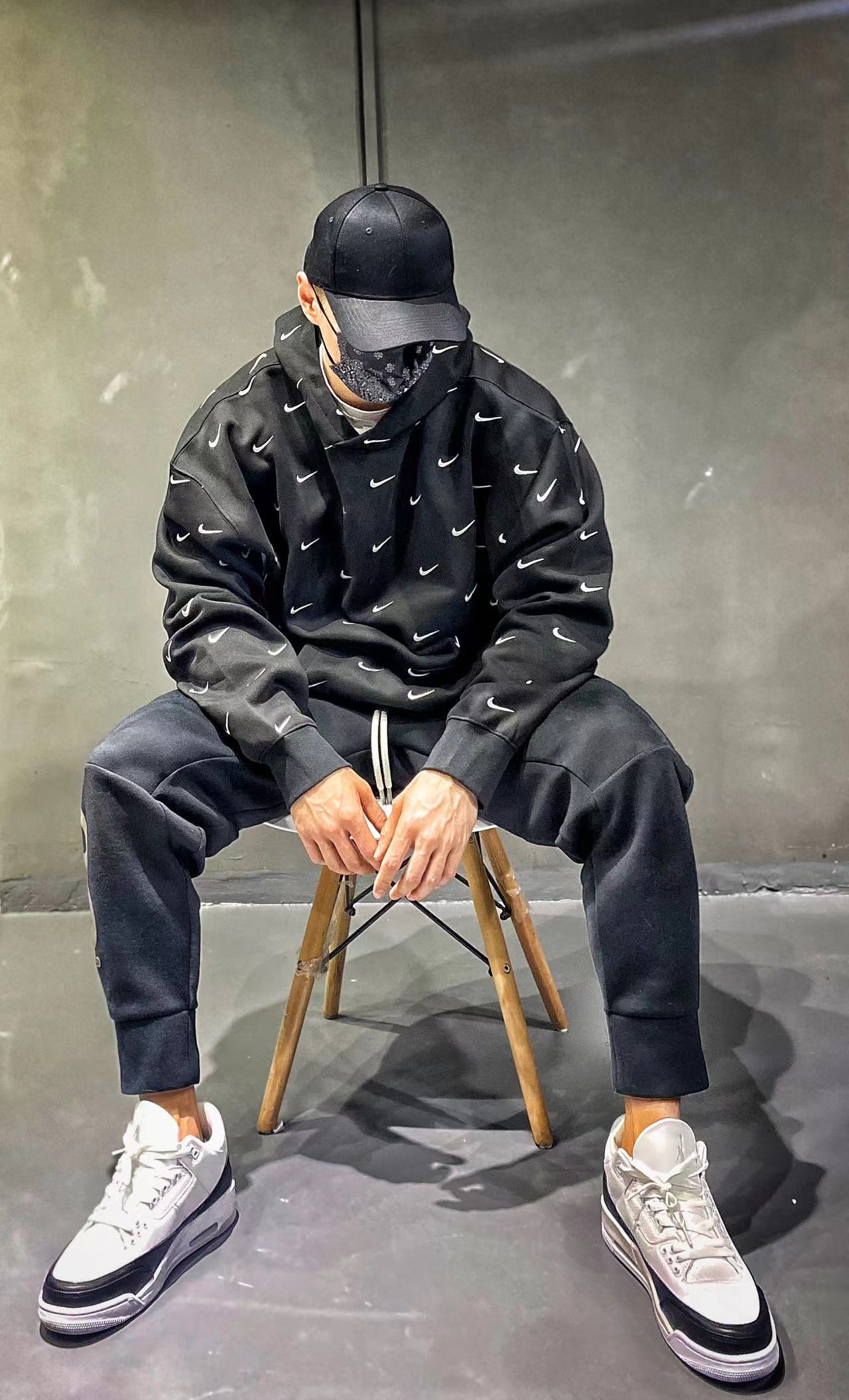 NK swoosh Nike full hook embroidery sports department hooded sweatshirt
