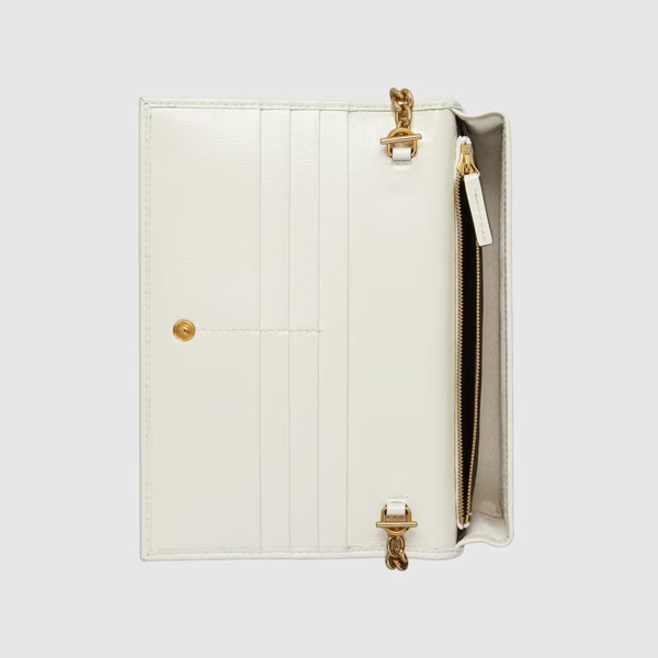 The wallet is presented as part of the Luxury hand accessories collection in the House’s Tote canvas, defined by the double ring and bar design also found in Handbags. The folded snap-closure shape features several card slots and pockets, completed with a detachable strap. The style is completed with white leather details.